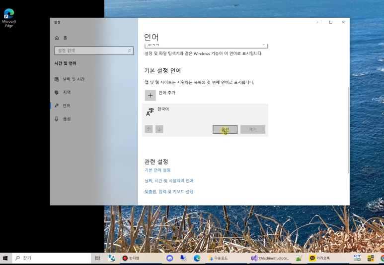 시스템설정의 "언어 및 키보드 옵션 편집" 클릭
