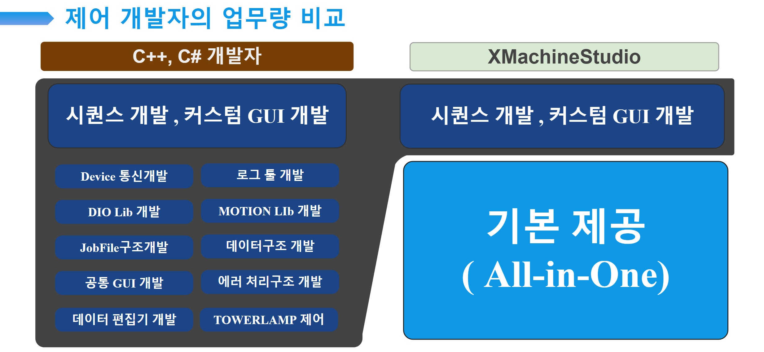 제어 장비 자동화: 일반 개발자 vs XMachineStudio 개발자