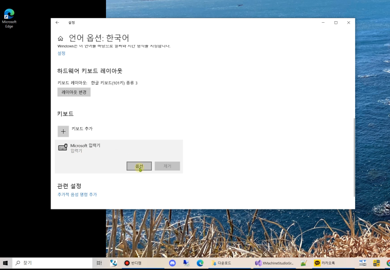 시스템설정의 "언어 및 키보드 옵션 편집" 클릭