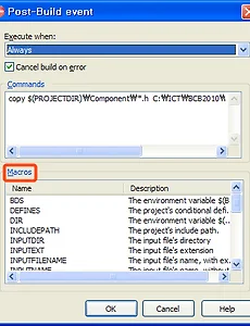 C++Builder6 C++빌더 2010에서 Build Event 사용하기 C++빌더에서 프로젝트 옵션에 보면 Build Events 라는 항목이 있습니다. 사용 사람에 따라서 빌드시작하기전, 링크 전에, 빌드 끝내고 원하는 명령을 실행할 수 있는 아주 멋진 기능이라고 생각합니다. 물론 사람에 따라 필요없는 기능일지도 모르죠 ㅠㅠ 간단한게 우리 회사에서 사용하는 용도만 설명 드리면 ICT에서는 콤포넌트나 라이브러리의 헤더 파일을 특정 폴더에 모아두는데 SVN서버에서 관리하는 폴더와 헤더 파일들을 모아두는 폴더가 다르기 때문에 헤더 내용이 바뀌면 매번 수작업으로 폴더에서 헤더파일을 복사해줘야 하는 불편함이 있었습니다. 이것을..빌드이벤트를 사용해서 빌드를 끝나고 자동으로 원하는 폴더로 복사하도록 세팅해서 사용하고 있습니다. 아래 이미지 보시면 프로젝트 옵션에서 [Build Eve.. 2010. 12. 7. C++빌더2010 - COGNEX 첫번째 화면 COGNEX 라이브러리 포팅을 시작한지 1주일만에 드디어 C++빌더 2010 프로젝트에서 COGNEX 라이브러리로 이미지를 띄우고 BLOB 연산을 해 볼 수 있었습니다.. 나머지도 별 문제 없이 포팅 되었으면 좋겠는데~ 항상 원하는 대로 진행 되는 프로젝트는 거의 없었죠~ 포팅의 기본 자세는 쉬운 장애물은 정면 돌파하고 , 너무 어려운 장애물은 피해가는 겁니다. ^^ 2010. 1. 31. F1008 Out of memory 에러 뜰때 버전 : 씨++빌더 2010 에러 종류 : 컴파일 에러 에러 메시지 : F1008 Out of memory 컴파일하면서 위와 같은 에러가 발생하면서 진행이 안되는 경우가 있습니다. 위와 같은 에러는 헤더 파일이 너무 클때 컴파일러의 사용 메모리가 부족하기 때문에 발생하는것으로 알려져있습니다. 현재 Import 한 타입 라이브러리 중에서는 헤더파일만 13만 라인이 되는것도 있습니다. ! 따라서 헤더 파일을 나누어 주거나 컴파일러가 사용하는 메모리 용량을 늘려주어야 합니다. 컴파일러 옵션중에 다음과 같이 하면 메모리 용량을 늘릴수 있습니다. 아래에서 100은 100MB 를 의미하는 숫자로서 임의로 입력하면됩니다. 웹검색 결과 512까지 가능하다고 합니다. -CX100 참고 페이지: https://forums.. 2010. 1. 31. C++Builder 를 사용하면서 가장 난감할때! C++빌더에 Cognex 비전 라이브러리를 붙이기 위해 타입 라이브러리 임포트해서 쓰고 있는데.. 컴파일하다가 아래와 같은 치명적인 오류가 뜬다. 쓰지 말란 얘긴가? 헐 2010. 1. 31. C++Builder2010 C++ Class Explorer C++빌더 2010부터 지원한다는 C++Class Explorer는 도대체 어떻게 쓰라는건지 모르겠다 폼 디자인 하면서 코딩넣기 귀찮은 Add Method , Add Property 를 쓰고 싶을뿐인데.. 도대체 폼 클래스 선택은 어찌하고 추가는 어찌 하라는건지.... 쩝 2009. 11. 25. 이전 1 2 다음